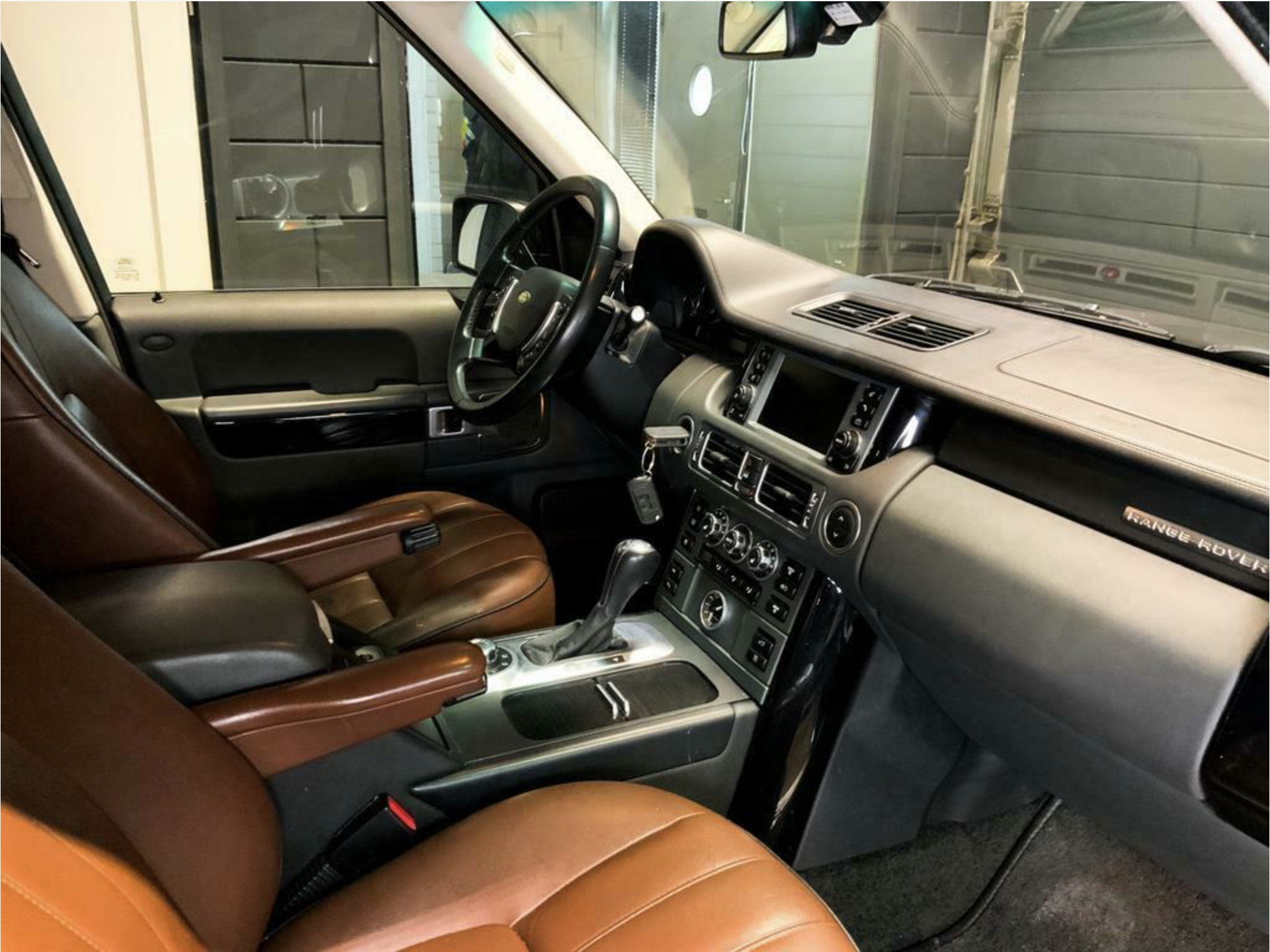 Wat het interieur betreft gaat het hier om een zeer stijlvol Cognac lederen interieur met Pianolak Trim, een zeldzame verschijning op dit type Range Rover.